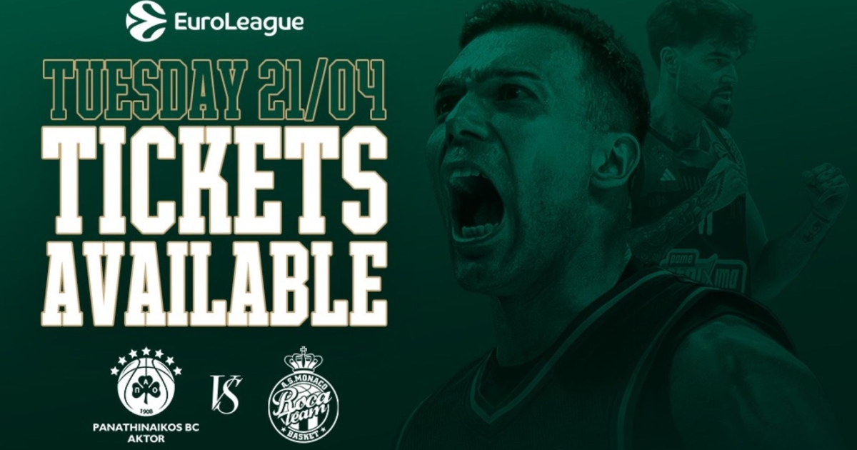 «Η ΚΑΕ Παναθηναϊκός AKTOR ενημερώνει πως τέθηκαν στη διάθεση των φιλάθλων της τα εισιτήρια για την εντός έδρας αναμέτρηση απέναντι στην AS Monaco, την Τρίτη 21 Απριλίου (21:00), για τα Play-in της EuroLeague.