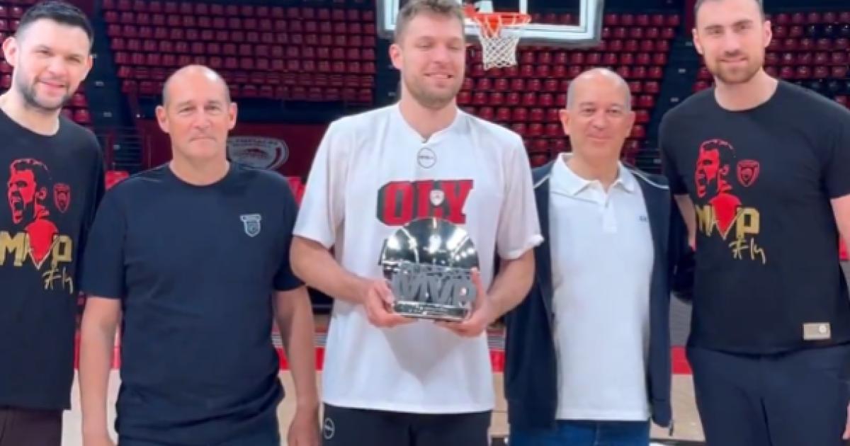 Go behind the scenes as Sasha Vezenkov receives his MVP award, celebrated by the @Olympiacos_BC family. pic.twitter.com/jU6EUyFNY6