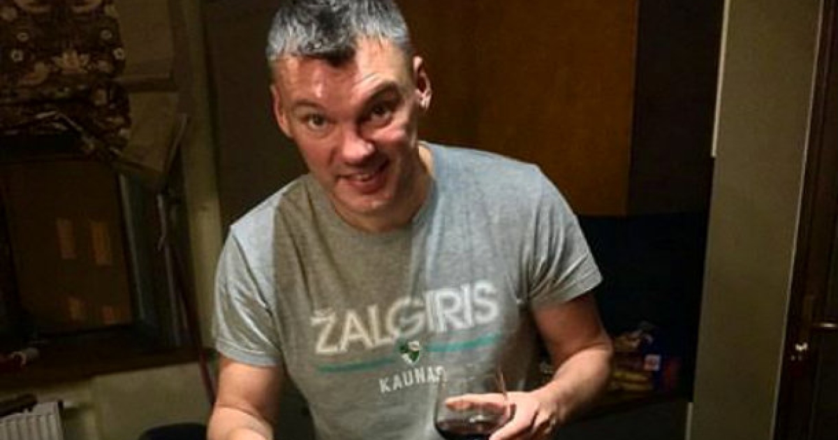 Ο Λιθουανός πρώην παίκτης του Παναθηναϊκού, αφού μαγείρεψε για βράδυ, παρακολουθεί το ματς των «πρασίνων», που αντιμετωπίζουν τον Ολυμπιακό στο ΣΕΦ, κι έδειξε τη στήριξή του σε αυτούς.