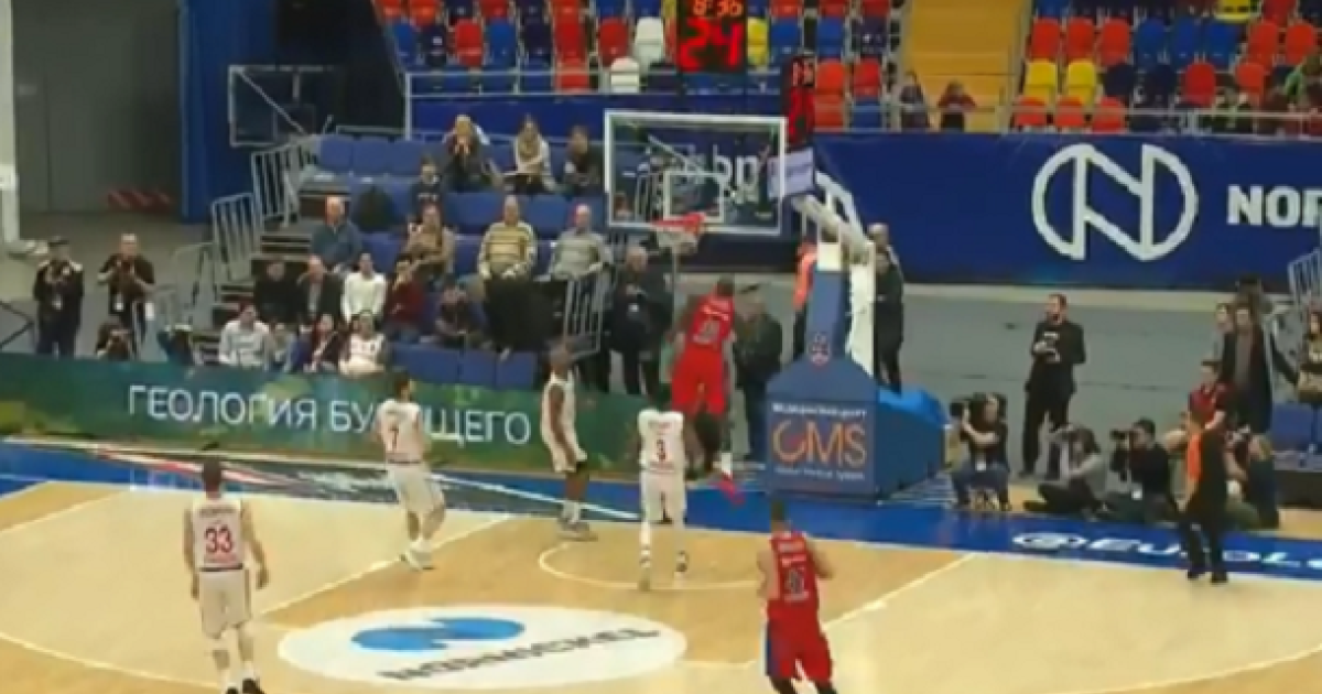 Ο Χίκμαν αστόχησε σε τρίποντο, οι παίκτες της ΤΣΣΚΑ έσωσαν την μπάλα όπως όπως, αυτή κατέληξε στον Ντε Κολό, ο οποίος πάσαρε στον Χάντερ, που πέτυχε ένα εκπληκτικό κάρφωμα,