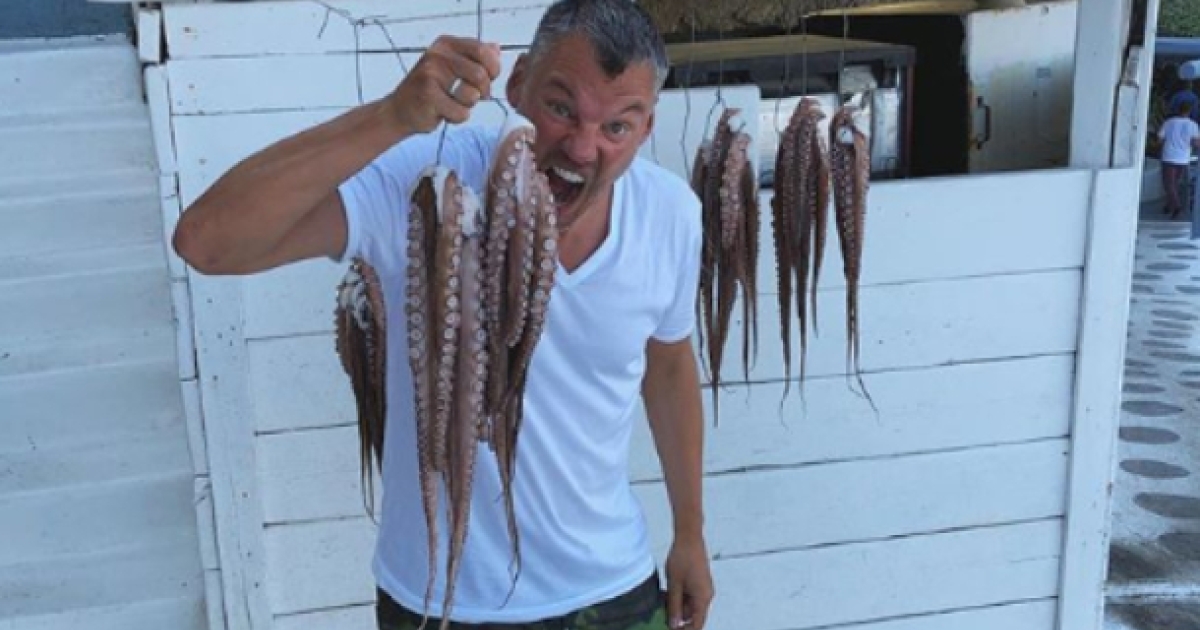 Ο Σαρούνας Γιασικεβίτσιους ανέβασε φωτογραφία απ΄το νησί με ένα χταπόδι να... συμπρωταγωνιστεί.