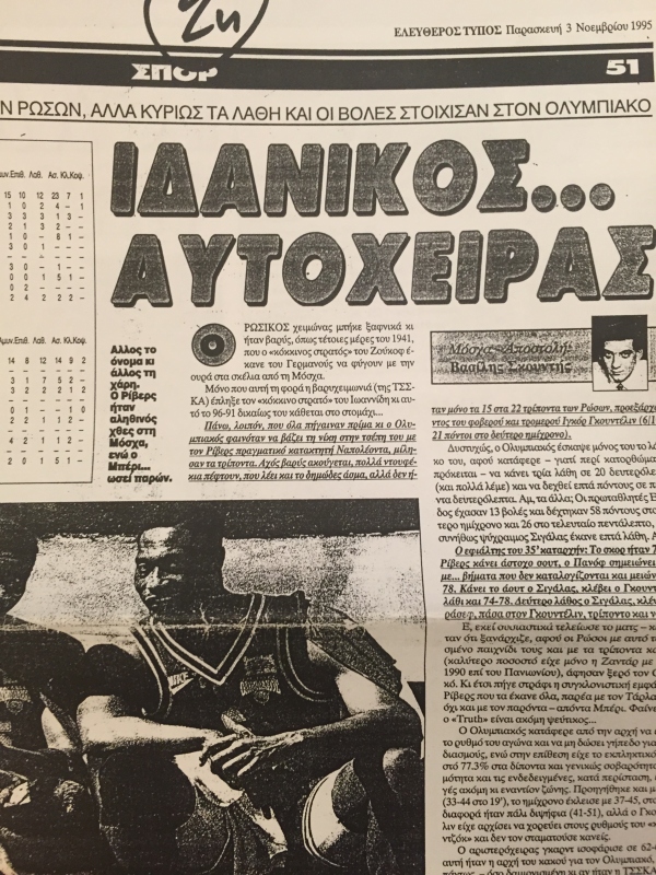 Το ημερολόγιο έδειχνε 2 Νοεμβρίου του 1995, όταν ο Ολυμπιακός υπέστη τα πρώιμα κρυοπαγήματα του περιβόητου ρώσικου χειμώνα, άλλωστε τέτοια εποχή το 1941 ο «κόκκινος στρατός» του Ζούκοφ είχε ξεπαστρέψει τις γερμανικές μεραρχίες και τις ανάγκασε να κάνουν μεταβολή!