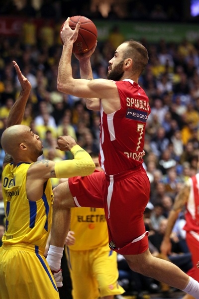 Εκείνο το βράδυ που ο Μπαρτζώκας δεν είχε στη διάθεση του τους τραυματίες Ει Σι Λο και Τζος Πάουελ και συν τοις άλλοις οι Πειραιώτες έμαθαν πριν από την έναρξη του ματς ότι είχε απορριφθεί η ένσταση τους για το (νικητήριο) καλάθι του Μπόμπι Μπράουν στον αγώνα με τη Σιένα στο ΣΕΦ, Σπανούλης σκόραρε 24 πόντους και ο Γιώργος Πρίντεζης 16, ενώ τον πρώτο λόγο από πλευράς γηπεδούχων είχαν ο Σμιθ με 17 πόντους και ο Ντέιβιντ Λόγκαν με 15