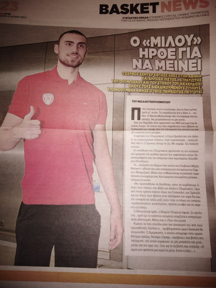 Ενάμιση χρόνο αργότερα ο Μιλουτίνοφ έφυγε από τον Ολυμπιακό: όχι για το ΝΒΑ (όχι ακόμα τουλάχιστον και κανείς δεν ξέρει εάν και πότε θα συμβεί αυτό) αλλά προς Μόσχα μεριά…