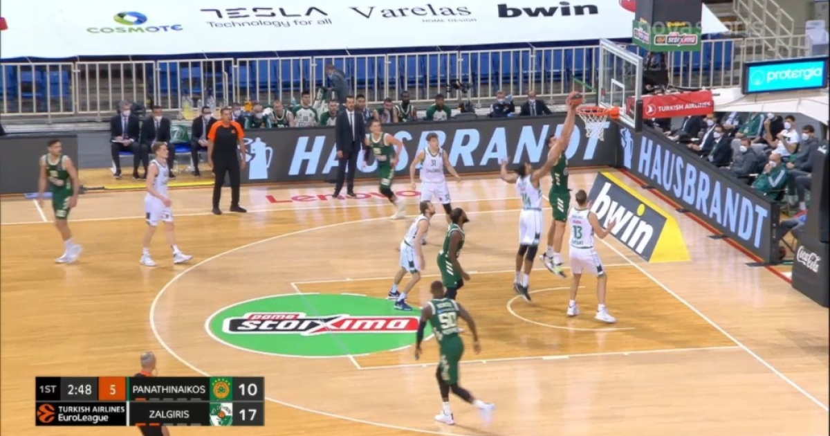 Το άστοχο σουτ του Σέλβιν Μακ βρήκε κάτοχο της μπάλας τον Ντίνο Μήτογλου. Για λίγα χιλιοστά του δευτερολέπτου, αφού ο Μήτογλου έκανε ένα εντυπωσιακό φόλοου κάρφωμα στο καλάθι της Ζαλγκίρις, κατά τη διάρκεια της αναμέτρησης με τους «πράσινους».