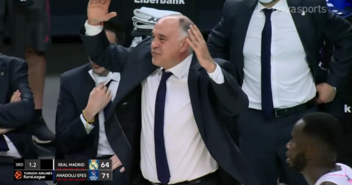 Με τον δείκτη του σκορ στο 64-71 στα τέλη της τρίτης περιόδου, οι διαιτητές έδωσαν φάουλ του Τόμπκινς στον Λάρκιν σε προσπάθεια για τρίποντο. Ο προπονητής της Ρεάλ ξέσπασε στον πάγκο, διαμαρτυρόταν έντονα για δυο λεπτά κι εν τέλει παρακολούθησε τη συνέχεια του ματς από τα αποδυτήρια του WiZink Center.