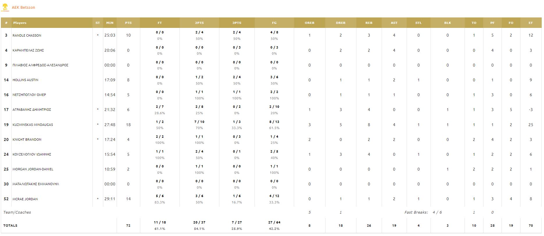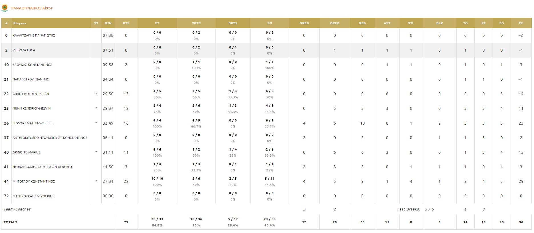 ΤΟ ΣΤΑΤΙΣΤΙΚΟ ΤΟΥ ΜΑΤΣ: Ο Παναθηναϊκός επιβλήθηκε για μία ακόμη φορά στα ριμπάουντ (38-26).