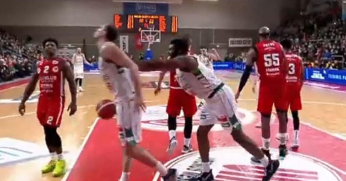 Αρχικά θέλησε να δώσει το χέρι του, αλλά ο συμπαίκτης του είχε γυρισμένη πλάτη με αποτέλεσμα να τον σπρώξει που «κατεδαφίστηκε» στο παρκέ!