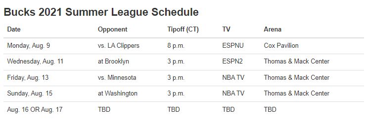Προπονητής των Μπακς στο Summer League είναι ο Πατ Σεντ Άντριους, βοηθός του Μάικ Μπουντενχόλζερ στο επιτελείο των πρωταθλητών.