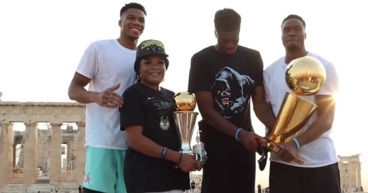 Η οικoγένεια Αντετοκούνμπο (ο Γιάννης, ο Θανάσης, ο Κώστας και η μητέρα τους Βερόνικα) είχαν βρεθεί στην Ακρόπολη στις αρχές Αυγούστου και πόζαραν παρέα με τα τρόπαια (τρόπαιο πρωταθλητή και MVP τελικών του Greek Freak).