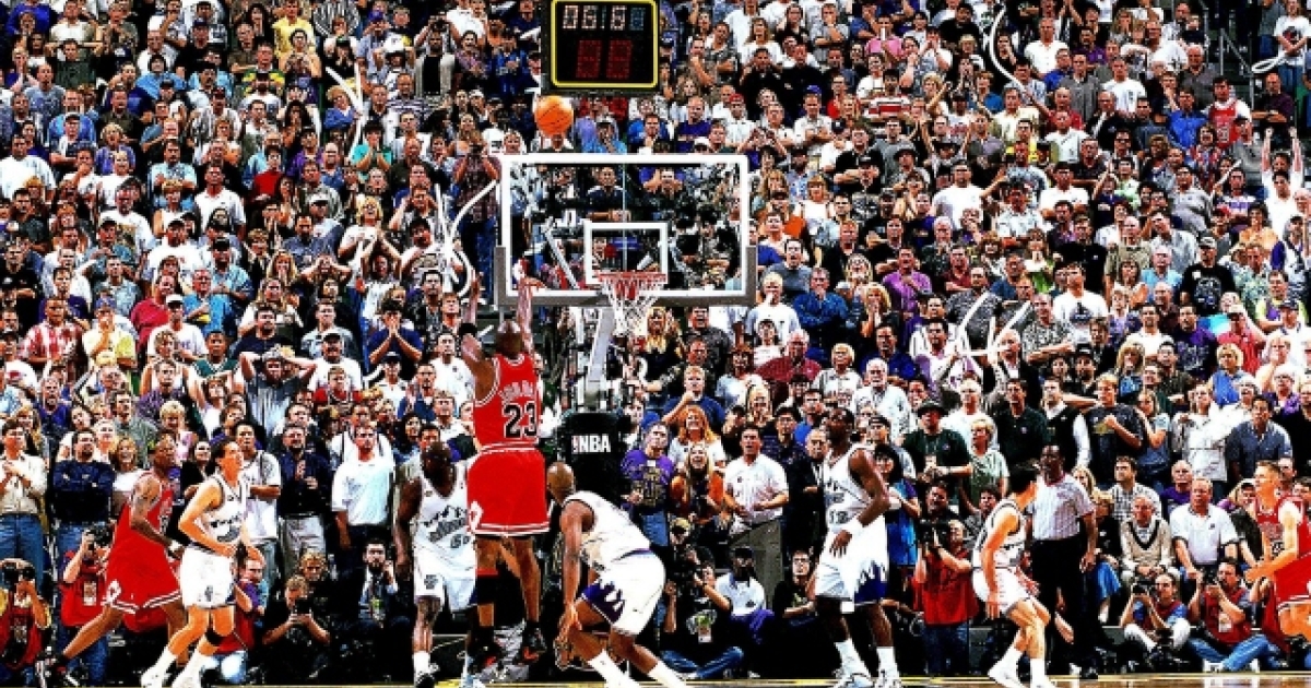 Ο «Air» σημείωσε 45 πόντους και... διέλυσε τους Τζαζ με το σημαντικότερο σουτ της καριέρας του. Οι Μορμόνοι είχαν την μπάλα στα χέρια τους στην τελευταία επίθεση, όμως ο Μάικλ που φημιζόταν εκτός των άλλων και για την άμυνα του, έκλεψε την μπάλα από τον Μαλόουν και στη συνέχεια σώριασε στο παρκέ τον Μπρίον Ράσελ για το περίφημο «last shot».
