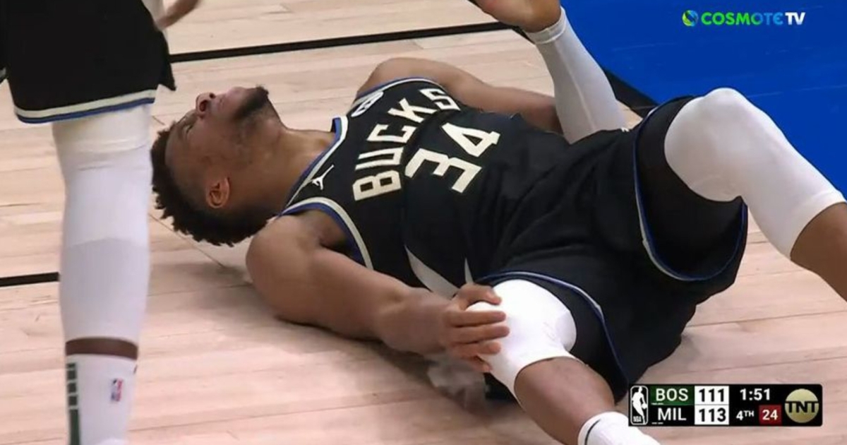 Απέμεναν 1:51 για το τέλος της κανονικής διάρκειας του αγώνα ανάμεσα στους Μιλγουόκι Μπακς και τους Μπόστον Σέλτικς (131-125 στην παράταση). Ο Giannis, σε μία προσπάθεια να πλησιάσει κοντά στο καλάθι των Σέλτικς σωριάστηκε στο παρκέ, δείχνοντας να πονάει αρκετά στο γόνατό του (δεξί, αυτό που τον ταλαιπωρεί τον τελευταίο καιρό)! Αμέσως το ιατρικό επιτελείο των Μπακς μπήκε στο παρκέ για να του δώσει τις πρώτες βοήθειες.