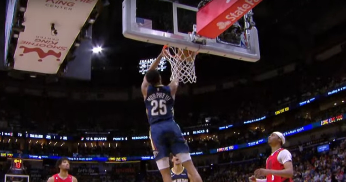 Ο Τρέι Μέρφι όχι απλώς «εκτέλεσε» το Πόρτλαντ με ρεκόρ καριέρας 41 πόντων και 9 τριπόντων, αλλά κατέκτησε και την κορυφή του Top-10 της ημέρας. Βρίσκοντας εκτεθειμένη την άμυνα των Μπλέιζερς έφτασε ως το ανάποδο κάρφωμα που του χάρισε την κορυφή.