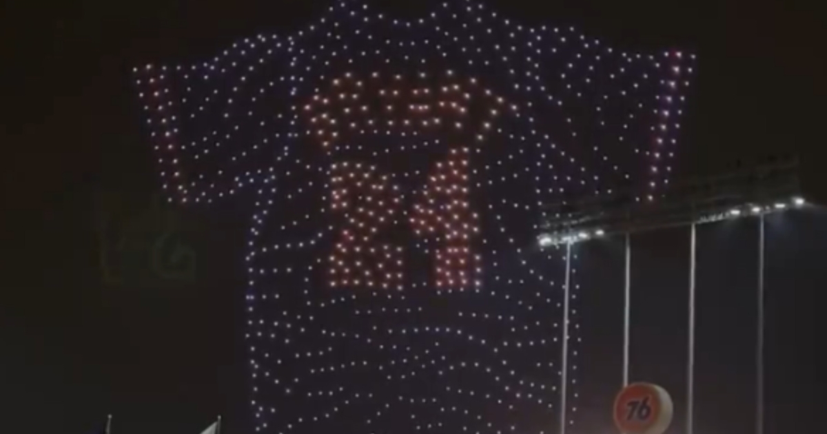 Λίγο αργότερα, δεκάδες drones με φώτα, πέταξαν στον ουρανό και άρχισαν ένα απίθανο σόου. Σχημάτισαν το λογότυπο του Μπράιαντ, λίγο αργότερα τη μορφή του να σκοράρει, τη φανέλα του και για περίπου 10 λεπτά άφησαν τον κόσμο με το στόμα ανοικτό.