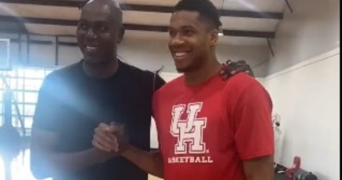 Giannis Antetokounmpo @Giannis_An34 putting in work with @UHouston GREAT Hakeem Olajuwon @DR34M #ForTheCity x #GoCoogs pic.twitter.com/iieM94NKpE
