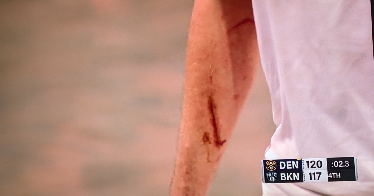 Ωστόσο αυτό δε σημαίνει ότι πέρασε και εύκολα. Ο Σέρβος σούπερ σταρ μάτωσε στο δεξί του χέρι και το κόψιμο φαίνεται να είναι αρκετά βαθύ. Φυσικά με το αίμα να πηγαίνει σε όλη του τη φανέλα, δε θα αργούσε η στιγμή που οι φαν των Νάγκετς θα έκαναν... viral το στιγμιότυπο.
