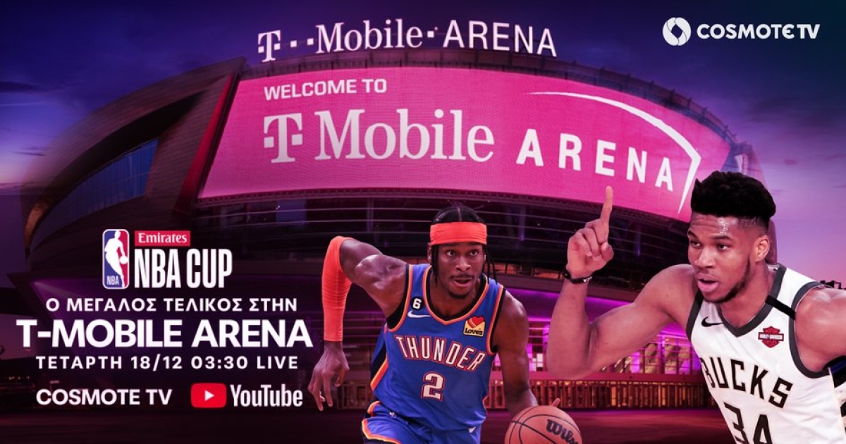 Ο μεγάλος τελικός του Emirates NBA Cup ανάμεσα στους Μπακς του Γιάννη Αντετοκούνμπο και τους Θάντερ έρχεται ζωντανά στην COSMOTE TV, τα ξημερώματα της Τετάρτης 18/12 (03.30), στην φαντασμαγορική T-Mobile Arena του Λας Βέγκας. Ο αγώνας θα μεταδοθεί ζωντανά από το COSMOTE SPORT 4HD και ταυτόχρονα από το YouTube κανάλι της COSMOTE TV.