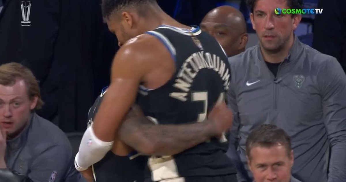 Σε ένα πολύ όμορφο στιγμιότυπο, το φοβερό και τρομερό δίδυμο των Μπακς αγκαλιάστηκε, ανακουφισμένο μετά την τεράστια προσπάθεια για την κατάκτηση του τίτλου. Σιγά σιγά βρίσκονται καλύτερα στο παρκέ, καταλαβαίνουν ο ένας τον άλλον και ήδη έχουν στην κατοχή τους παρέα και το NBA Cup.