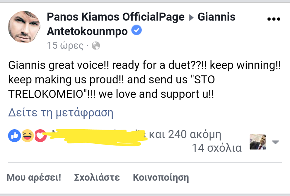 Με αφορμή το βίντεο που έδειχνε τον Γιάννη Αντετοκούνμπο να τραγουδάει... Κιάμο, ο γνωστός τραγουδιστής φρόντισε να του απαντήσει και να του προτείνει να τραγουδήσουν μαζί!