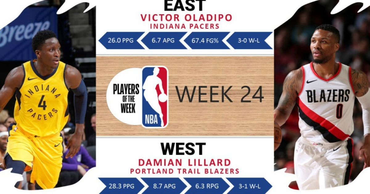 Οι Βίκτορ Ολαντίπο και Ντάμιαν Λίλαρντ είναι οι παίκτες που ξεχώρισαν την περασμένη εβδομάδα και εκείνοι που πήραν τα αντίστοιχα βραβεία σε Ανατολή και Δύση αντίστοιχα.