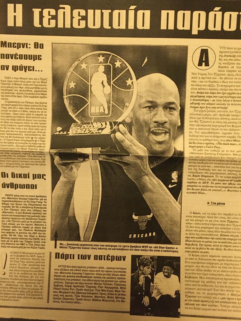 Είχα ξαναταξιδέψει στη Νέα Υόρκη, όσο για την Αμερική είχα χαλάσει ήδη δυο διαβατήρια και δυο βίζες από την πρώτη φορά που διέσχισα τον Ατλαντικό, δέκα χρόνια πριν. Αll Star Game, όμως στο μαυσωλείο του ΝΒΑ, το Μadison Square Garden και μάλιστα το πρώτο στο οποίο βρέθηκαν ενώπιος ενωπίω ο Τζόρνταν και το... Τζορντανοειδές, ε, αυτό πια ξεπερνούσε κάθε φαντασία!