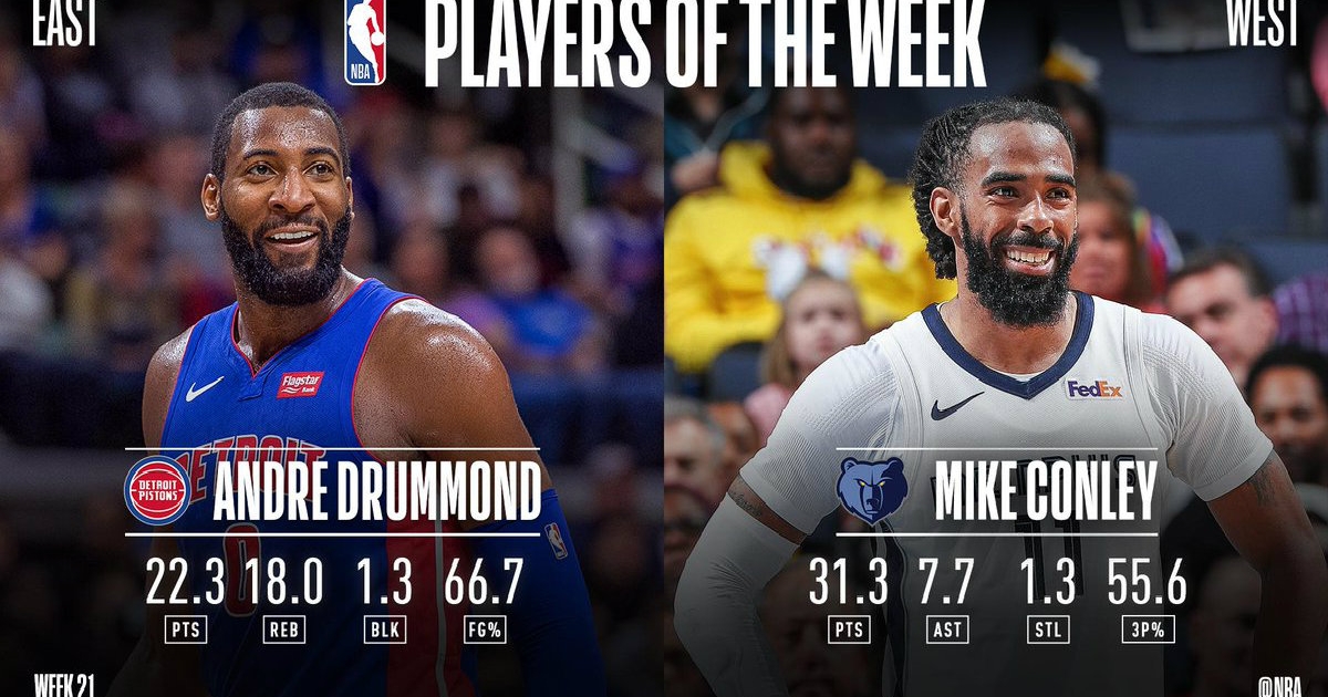 Αντρέ Ντράμοντ και Μάικ Κόνλεϊ ήταν οι κορυφαίοι της προηγούμενης εβδομάδας στο ΝΒΑ.
