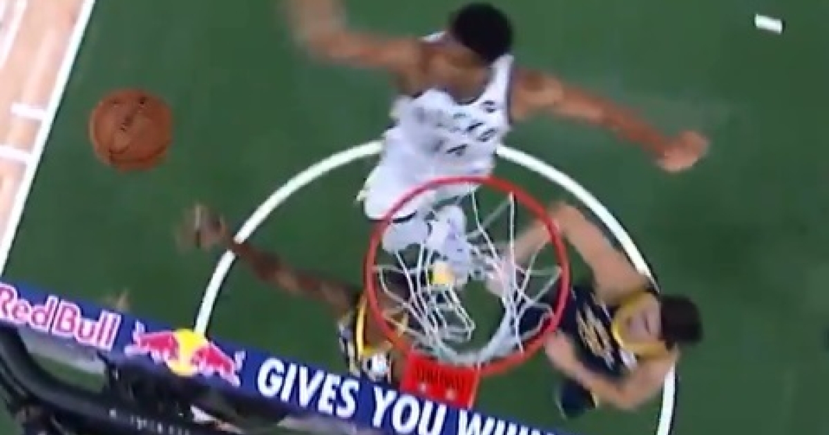 Μετά το κάρφωμα αλά... Air Giannis, ο ηγέτης των Μπακς έδειξε ότι δεν... κάνει πλάκα κάτω από τη ρακέτα. Είτε πρόκειται την άμυνα είτε την επίθεση. Σ' αυτή τη φάση τα βάζει με όλους και βγαίνει νικητής.