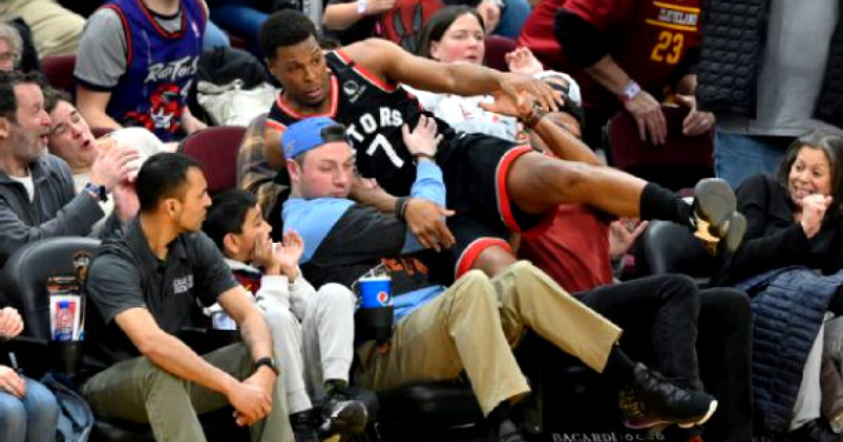 Ο σταρ του Τορόντο, σε προσπάθειά του να σώσει την κατοχή για την ομάδα του στο παιχνίδι με τους Καβαλίερς, κι έπεσε πάνω σε δύο φιλάθλους που ήταν στα court seats.