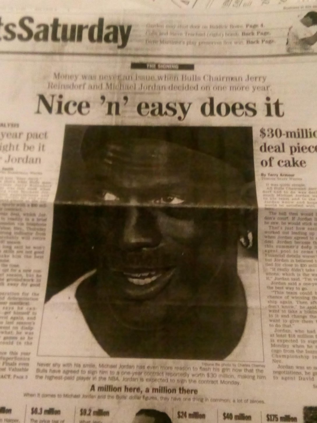 Με εκείνο το ιλιγγιώδες συμβόλαιο ο Τζόρνταν πήρε αύξηση της τάξεως του 700% και θα εισέπραττε μέσα σε μια σεζόν όσα είχε μαζέψει τα προηγούμενα οκτώ χρόνια!
