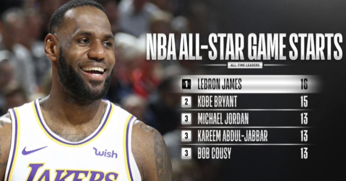 Ο Βασιλιάς έφτασε τις 16 συμμετοχές σαν βασικός στο All Star Game και βρίσκεται στην κορυφή της λίστας.
