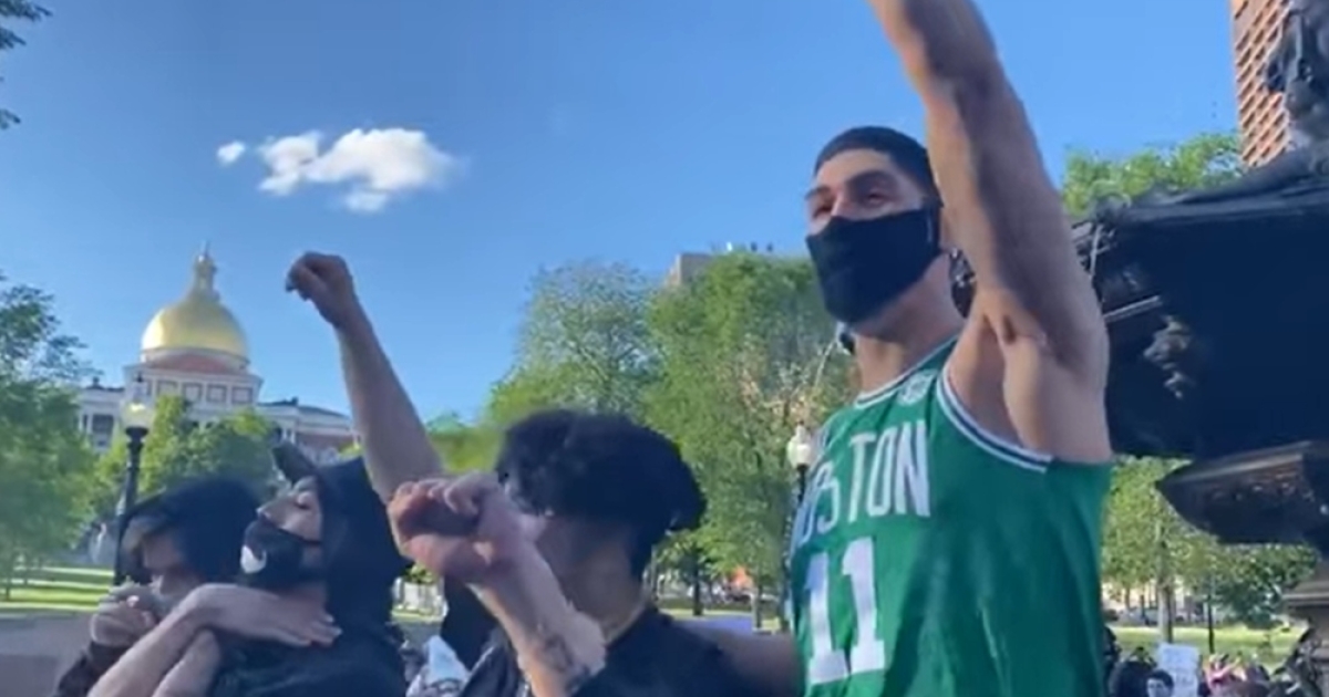 Ο Τούρκος σέντερ έχει δείξει πολλές φορές ότι στέκεται απέναντι σε ό,τι θεωρεί άδικο και ακόμα μια φορά έδειξε τον δρόμο. Βγήκε μπροστά σε ειρηνική διαδήλωση της Βοστόνης και μαζί με τους υπόλοιπους διαδηλωτές φώναξε το συγκλονιστικό σύνθημα «I Can't Breathe», με την Αμερική να φλέγεται εξαιτίας της δολοφονίας του Φλόιντ από αστυνομικό.