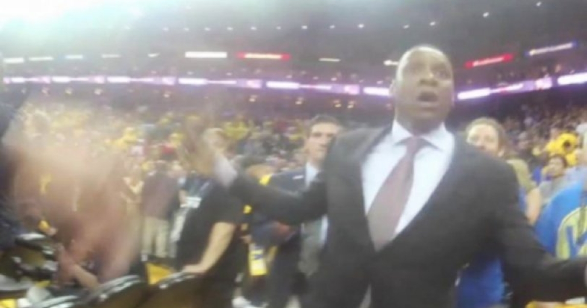 Τότε, ο Μασάι Ουτζίρι είχε θερμό επεισόδιο με τον αστυνομικό, Άλαν Στρίκλαντ, και όπως διακρίνεται στο βίντεο από την κάμερα που είχε πάνω του, ήταν εκείνος που έσπρωξε πρώτος, και μάλιστα δύο φορές, τον πρόεδρο των Ράπτορς, τη στιγμή που εκείνος προσπαθούσε να του δείξει την διαπίστευσή του, για να περάσει στο παρκέ και να πανηγυρίσει με την ομάδα του!