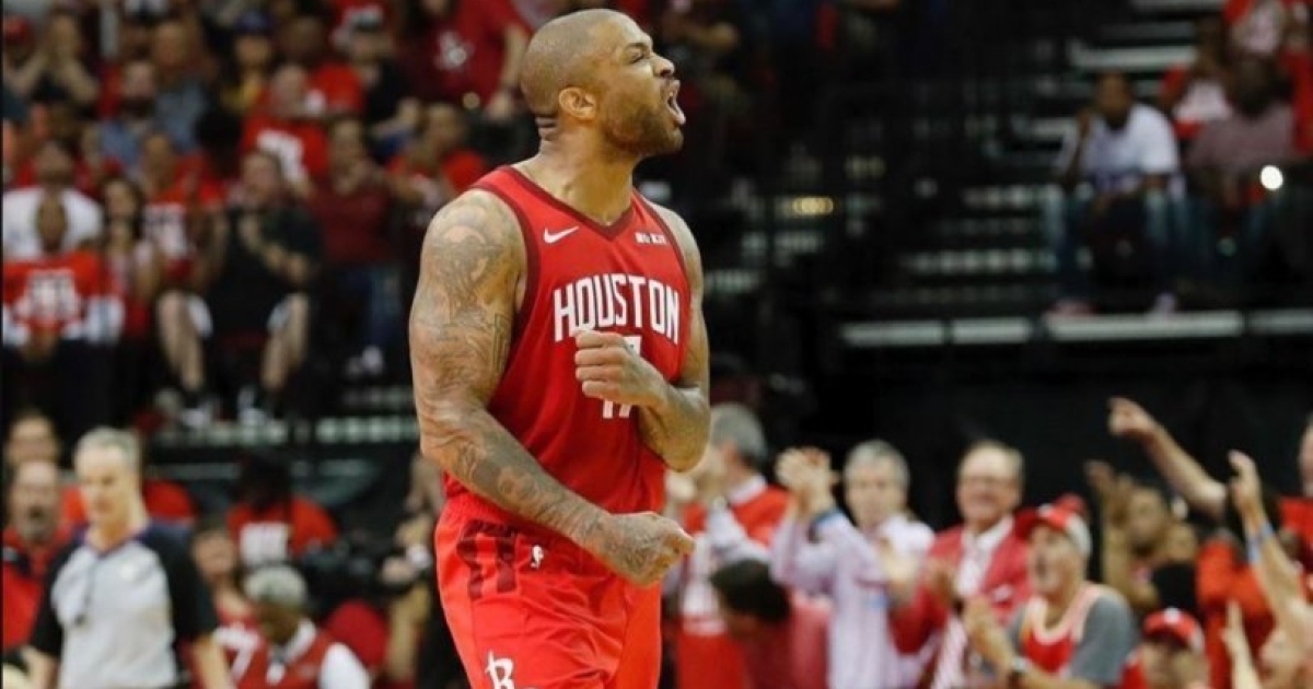 PJ Tucker declines to answer any questions about his friend and teammate James Harden: "I’m here to talk about PJ Tucker."