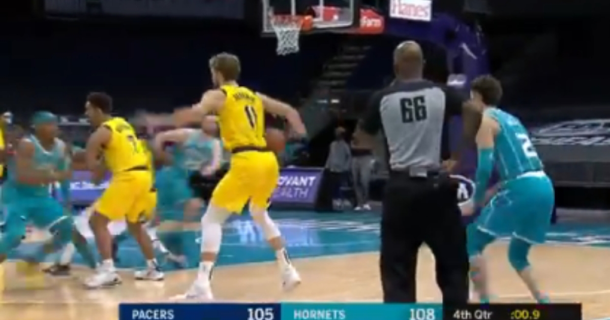 Στο χρονόμετρο έμεναν 8 κλάσματα του δευτερολέπτου και οι Χόρνετς ουσιαστικά είχαν κερδίσει το παιχνίδι κόντρα στους Πέισερς.