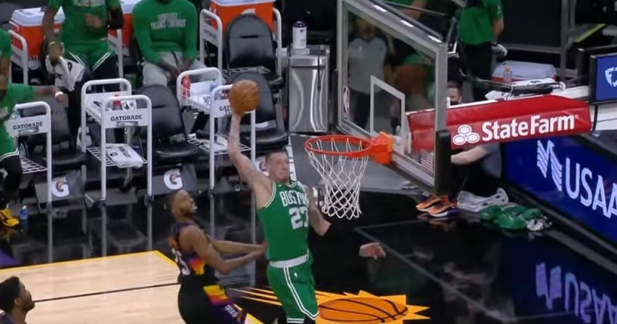 Ο σούπερ σταρ των Σέλτικς «σέρβιρε» τη μπάλα την κατάλληλη στιγμή στον Γερμανό σέντερ, ο οποίος με εμφατικό τρόπο «τελείωσε» τη φάση με alley oop κάρφωμα.