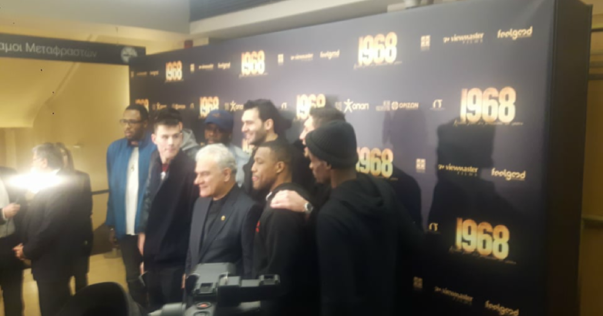 Σύσσωμη η οικογένεια της μπασκετικής ΑΕΚ βρίσκεται στο στο «Παλλάς» για την επίσημη πρεμιέρα της ταινίας «1968» σε σκηνοθεσία του Τάσου Μπουλμέτη και μουσική της Ευανθίας Ρεμπούτσικα.