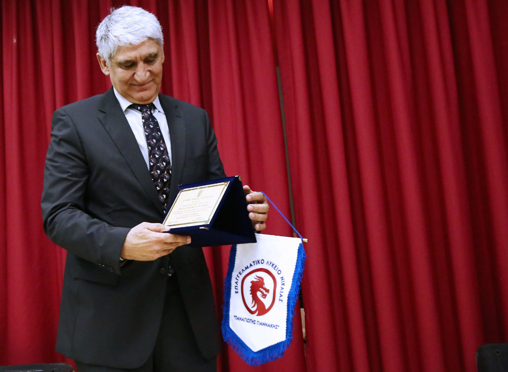 Το υπενθύμισε την ώρα που απένεμε μια τιμητική πλακέτα στον Παναγιώτη Γιαννάκη, στην κορύφωση της (πραγματικά και στην κυριολεξία) σεμνής, αλλά συνάμα συγκλονιστικής και ιστορικής τελετής ονοματοδοσίας του 1ου Επαγγελματικού Λυκείου της Νίκαιας...
