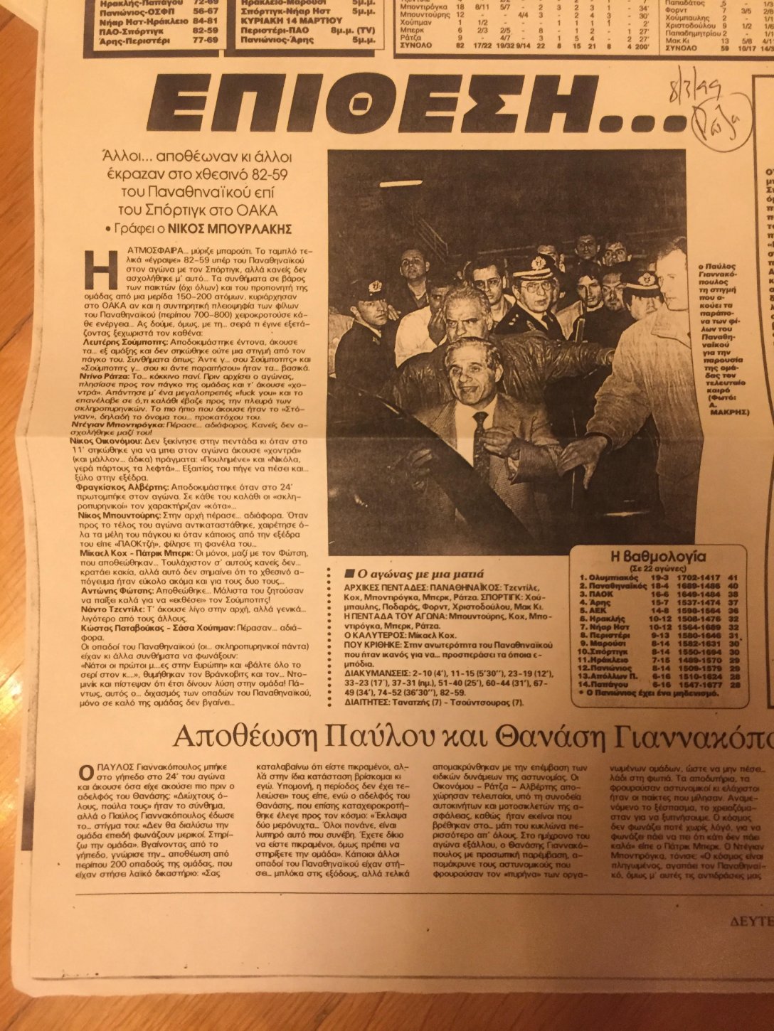 Έπειτα από δυο μέρες, στον αγώνα πρωταθλήματος με τον Σπόρτιγκ στο ΟΑΚΑ, πήγαινε δακρυσμένος προς την εξέδρα, ανέβαινε πάνω στις διαφημιστικές πινακίδες, έβαζε το δεξί χέρι στο μέρος της καρδιάς και πέταγε τη φανέλα του στον κόσμο, που τον αποθέωνε!