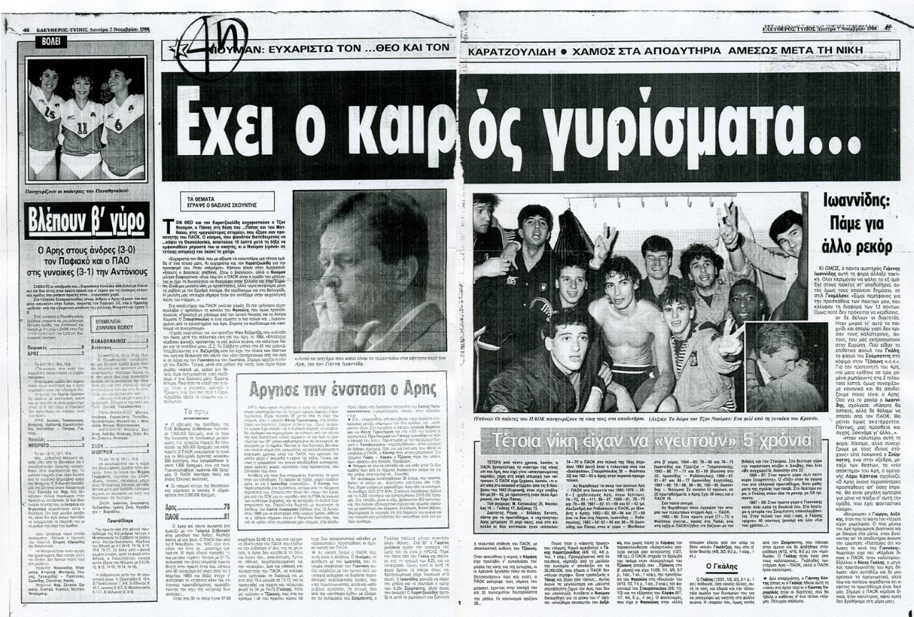Την μεθεπόμενη ημέρα στον «Ελεύθερο Τύπο» έγραψα ότι τα τελευταία πέντε χρόνια ο Αρης έμοιαζε με τον Τεόφιλο Στίβενσον στα ντουζένια του: πέντε διότι ο ΠΑΟΚ είχε νικήσει τον Αρη για τελευταία φορά σε αγώνα πρωταθλήματος με σκορ 69-62 στις 6 Νοεμβρίου του 1983 (με προπονητή τον Χάρι Πάπας, σωστό τρελοκομείο) και έκτοτε υπέστη δέκα απανωτές ήττες, αλλά όπως παντού, έχει ο καιρός γυρίσματα...