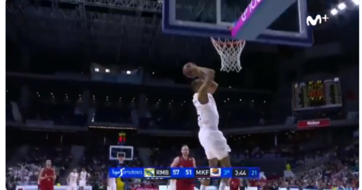 Ο παίκτης της Ρεάλ έφυγε στον αιφνιδιασμό και τελείωσε τη φάση με κάρφωμα 360 μοιρών.
