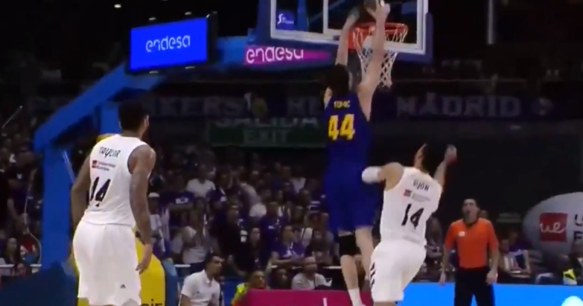 Ο Γάλλος πλέι μέικερ πάσα την κατάλληλη στιγμή στον Κροάτη σέντερ, ο οποίος δεν πτοήθηκε από την παρουσία του Αγιόν και κάρφωσε με μανία τη μπάλα στο καλάθι της Ρεάλ.