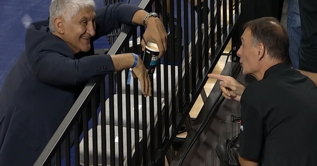 Λίγο μετά τη νίκη-πρόκριση του Προμηθέα Πάτρας επί της ΑΕΚ και λίγο πριν από το τζάμπολ του δεύτερου ημιτελικού, οι δύο προπονητές είχαν την ευκαιρία να συνομιλήσουν σε ευχάριστο τόνο.