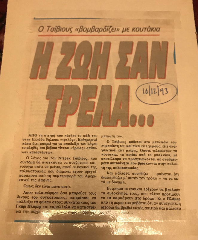Grosso modo, αυτόν τον Ντέρικ Τσίβους γνωρίσαμε στη Δάφνη, αυτόν αγαπήσαμε, αυτόν θα ήθελα να ξαναδώ μετά από είκοσι πέντε χρόνια και να του ζητήσω κιόλας μια ετεροχρονισμένη συγνώμη επειδή τότε (εμείς οι καθώς πρέπει, τρομάρα μας) τον είχαμε πάρει στο ψιλό και επιμέναμε πως έπρεπε να έρθει ο μπόγιας για να τον μαζέψει και να τον πάει σούμπιτο στο Δαφνί!