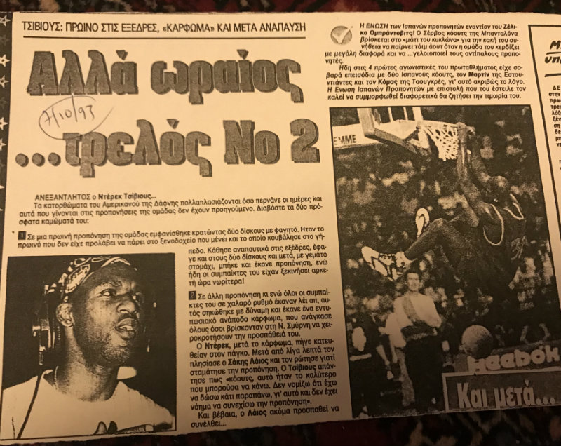 Ο Σάκης υπήρξε θύμα της τρέλας του Ντέρικ εκείνο το πρωινό της 19ης Οκτωβρίου του ’93, όταν ως είθισται, εμφανίστηκε στο γήπεδο κρατώντας τους δυο δίσκους με το πρωινό του που δεν είχε προλάβει να το φάει στο ξενοδοχείο!