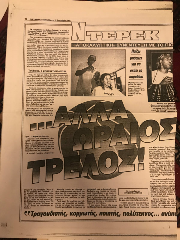 Έχω γράψει πολλά ποιήματα, όχι σε κανονικό χαρτί, αλλά πάνω στα boarding pass των πτήσεων! Να τα εδώ (ΣΣ: τα έβγαλε από την τσάντα του και τα έδειξε). Το τελευταίο από αυτά έχει τίτλο «Wake up your mind» και το αφιερώνω στους Έλληνες. Να ξυπνήσετε το μυαλό σας!