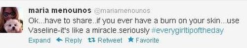 “Ok… πρέπει να το μοιραστώ μαζί σας. Αν ποτέ καείτε από τον ήλιο, χρησιμοποιείστε βαζελίνη. Κάνει θαύματα! Σοβαρά!”