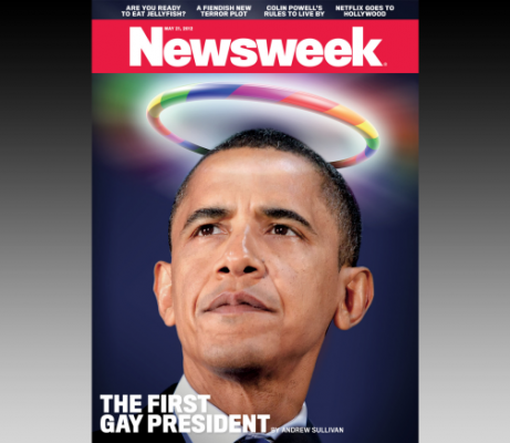 Ο Ομπάμα είχε δηλώσει ότι «είναι σημαντικό για μένα να διαβεβαιώσω ότι τα ζευγάρια του ίδιου φύλου πρέπει να έχουν δικαίωμα στον γάμο». Τα ΜΜΕ τον σχολίασαν ποικιλοτρόπως, αλλά το newsweek τον έβγαλε πρωτοσέλιδο με πολύχρωμο φωτοστέφανο και λεζάντα: «Ο πρώτος γκέι πρόεδρος»!