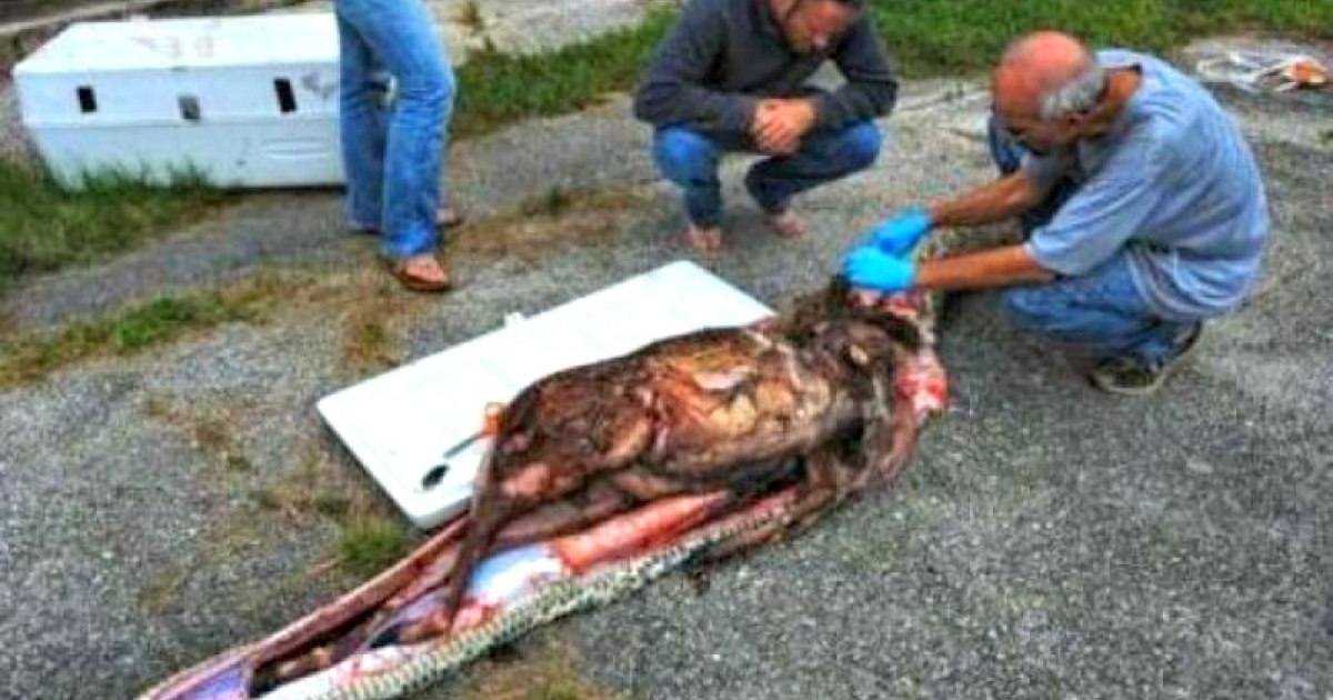 Ένας πύθωνας βρέθηκε και αιχμαλωτίστηκε αμέσως μετά το γεύμα του, στη συνέχεια θανατώθηκε και στην κοιλιά του βρέθηκε ένα ολόκληρο ελάφι! Δείτε τις σχετικές εικόνες.