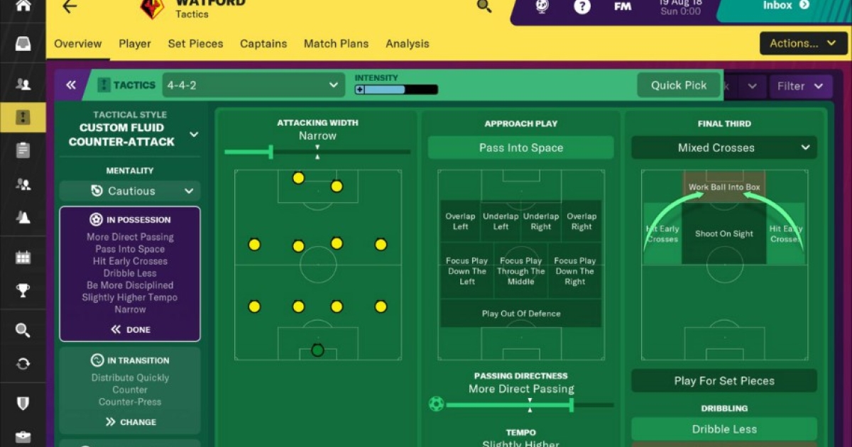 Στο Football Manager 2019 οι παίκτες θα έχουν τη δυνατότητα να επιλέξουν τακτική Gegenpress, Catenaccio και Tiki-Taka.