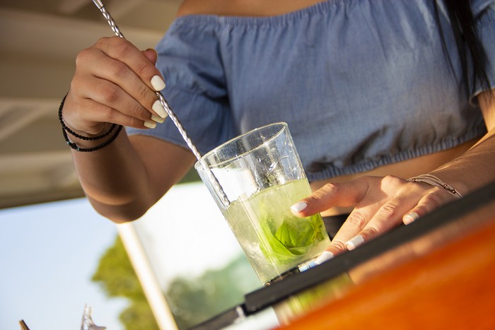 Top up: Grapefruit soda, 1 κορυφή δυόσμου, τριμμένη σοκολάτα